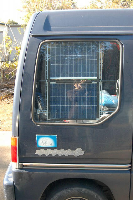サンバー号のガラスのうち、右リアは見えなくてもまったく困らない(てゆうか、運転席から見えない)ので、みっちり貼り付ける。