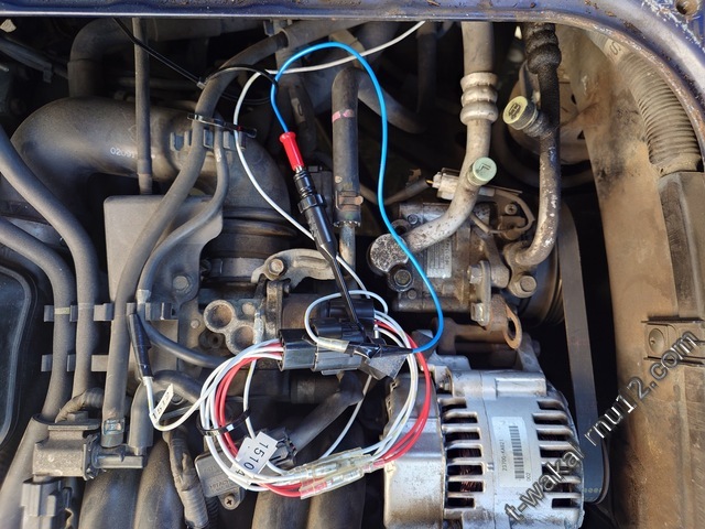 エンジンハーネスに針を刺して接続。